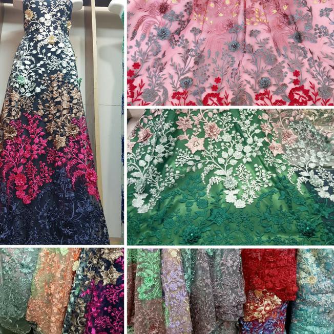 Tulle 3d Gradasi Bunga Rambat Kain Bahan Gaun Kebaya Dress
