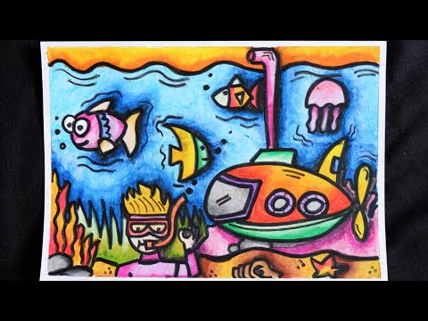 Mewarnai Pemandangan Bawah Laut Dengan Crayon