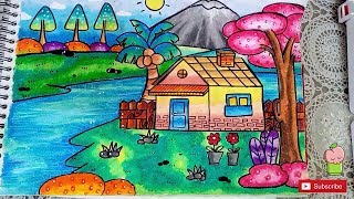 Cara gradasi warna ep 140 tema gambar pemandangan buat pemula fifitan. Black marker drawing paper a4 faber castel oil pastel 60 pencil 8b black tip ex in this episode we will learn how to draw. Harapannya semoga kegiatan mewarnai gambar rumah ini menjadi menyenangkan bagi anak anak.