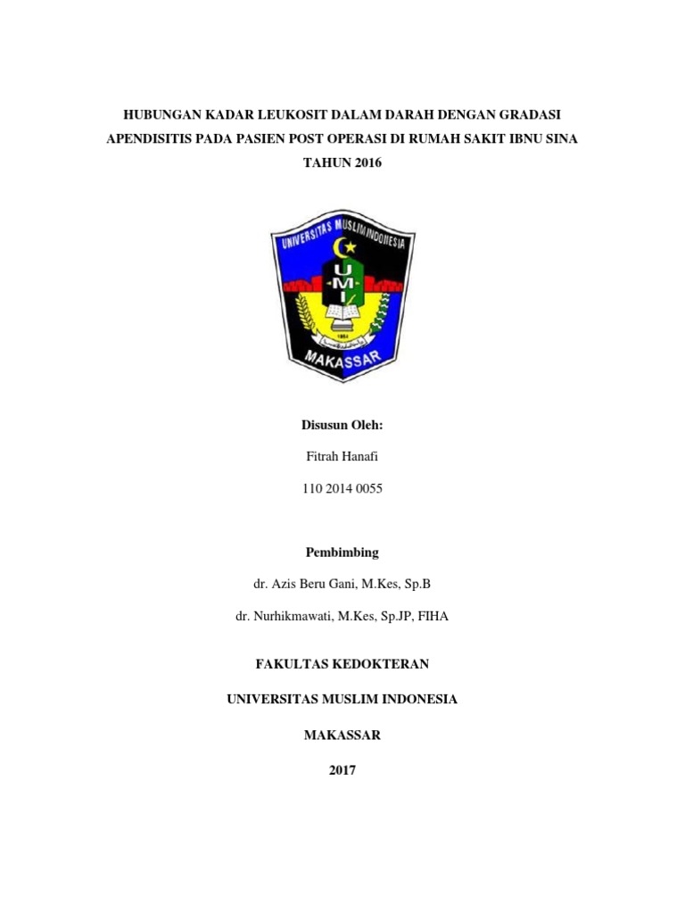 Hubungan Kadar Leukosit Dalam Darah Dengan Gradasi Apendisitis