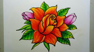 Cara Mudah Menggambar Bunga Mawar Merah Gradasi Warna Oil Pastel