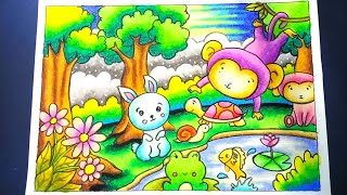 Menggambar Dan Mewarnai Pemandangan Taman How To Draw Garden