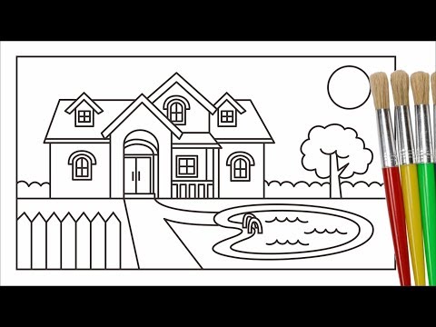 Cara Menggambar Dan Mewarnai Rumah Dengan Kolam Youtube