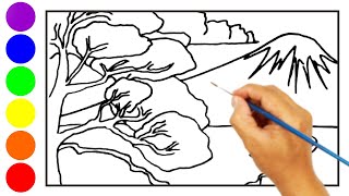 Cara Menggambar Pemandangan Gunung Dan Sawah Drawing Scenery