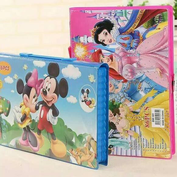 গ ণ Crayon Art Set 86 Pcs Lengkap Model Koper Karakter Kartun